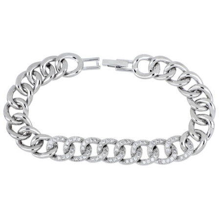 La pulsera String Mix está bañada en rodio con eslabones grandes y adornada con circonitas Crystal.